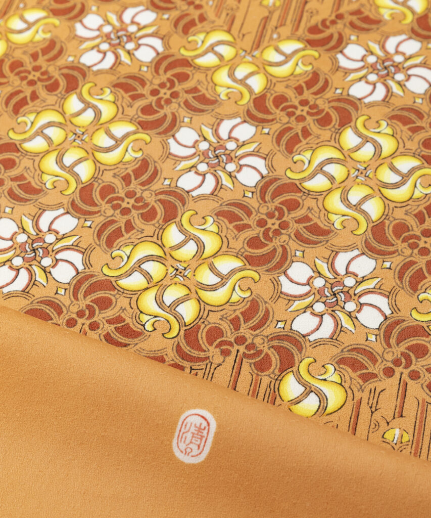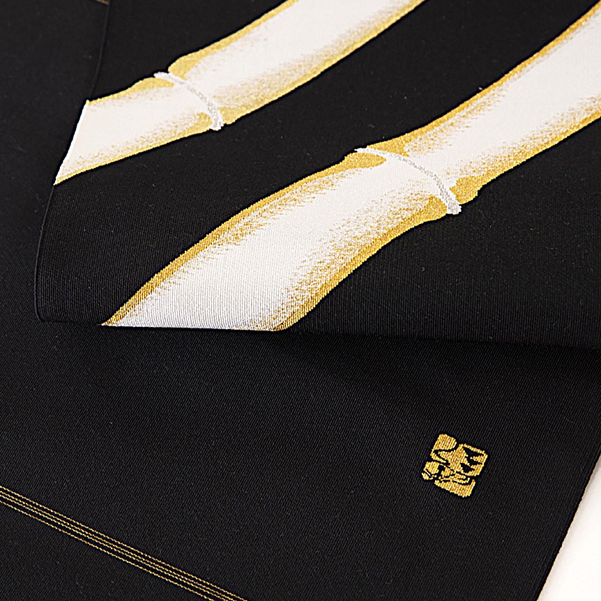 日本工芸会正会員 鈴田清人さん作 木版摺更紗 染九寸名古屋帯地 「石蕗」 未仕立て品を入荷いたしました!