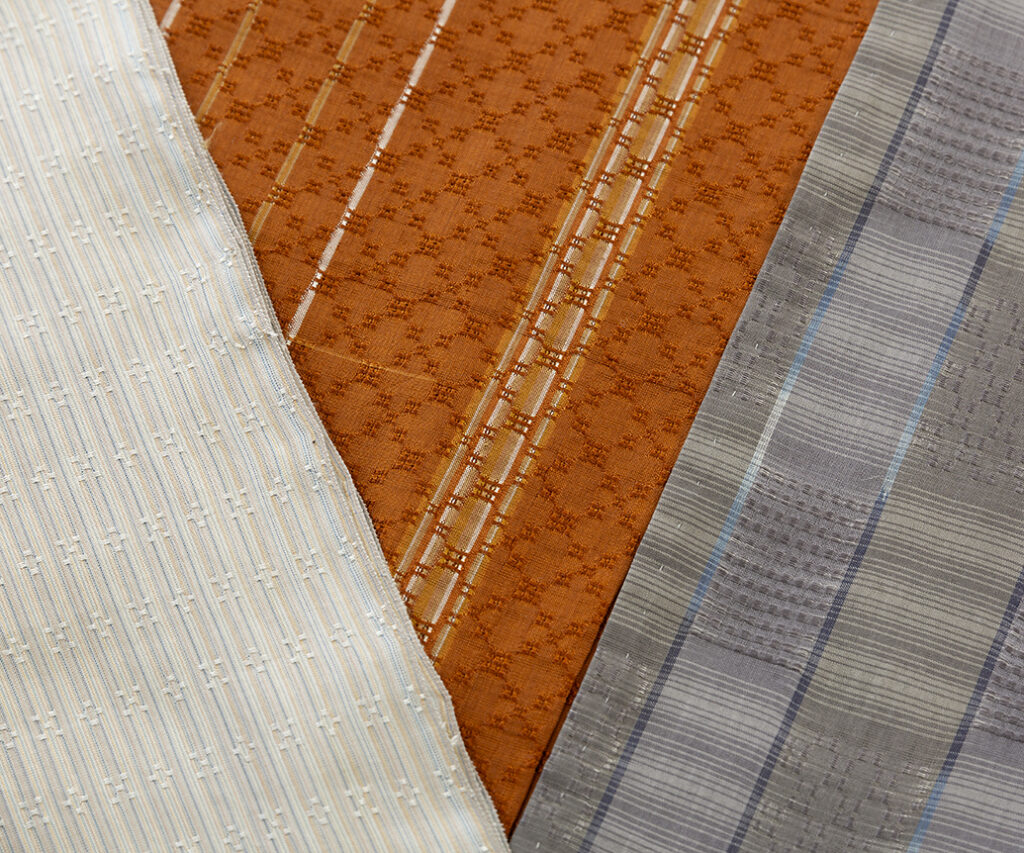 日本工芸会正会員 秋山眞和さん作の花織 綾の手紬 着物地 未仕立て品 3点 入荷いたしました!