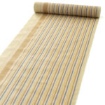 苔色、素色、茶色のの横段に縦横の縞柄の織りを入れた、民藝味に溢れ、温かみのある紬九寸名古屋帯です。