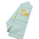 承和色の地に、幼い頃によく折り紙で作った可愛らしいやっこさん、だまし船、兜、折り鶴などを優しい色使いと松などの柄を付けて描いた、温かく懐かしさの漂う志ま亀製 九寸名古屋帯です。