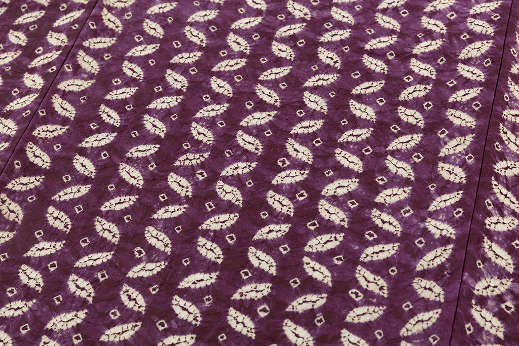 製造工程は全て手作業で、原反から型付け、絞り、染色、幅だし、仕上げまで熟練の技術者の手により、丁寧に手間と時間を惜しまずに反物が作られます。「大切に着れば100年もつ」と言われる南部紫根染。一生ものの、親子代々の着物として1枚いかがでしょうか。
