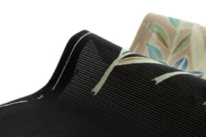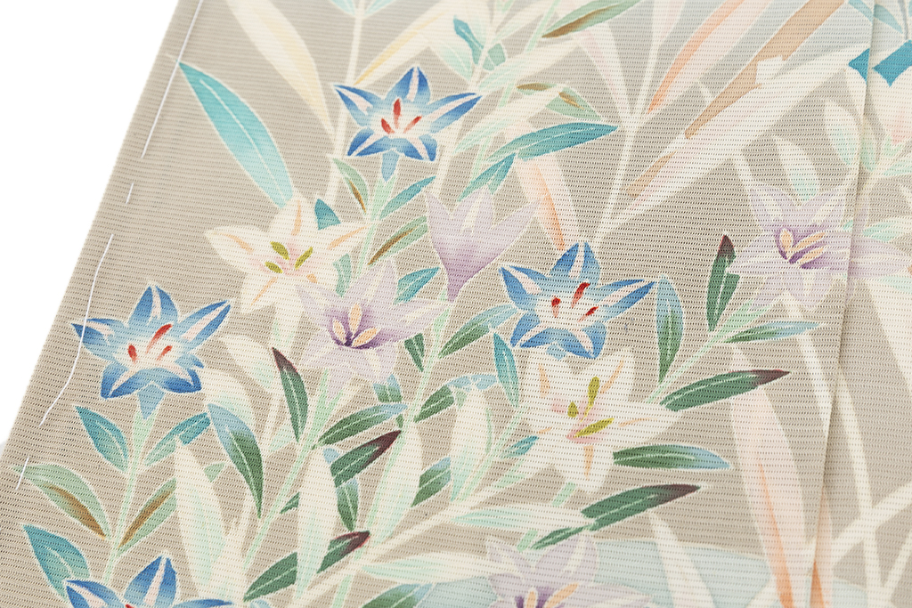 箔や絞り、刺繍などの技法はほとんど用いず、加賀五彩「 臙脂・藍・黄土・草・古代紫」を基調とした染色、ぼかしだけで描かれ、製作工程の多くを一人の作家さんが手掛けるめ、それぞれの個性が一番表現される友禅ではないでしょうか。