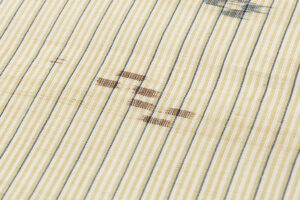 その後、海水に晒す「海晒し」をおこないます。海水につけることで、色止めや余分な染料を落とし地色が白く晒され絣模様がより鮮やかになります。