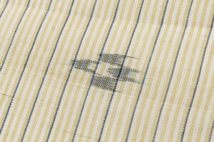すっきりと清涼感あふれる八重山上布地に、 胡桃色と錫紵の優しい色彩の細い縦縞を綺麗に織り出し、細かな絣柄を配して可愛らしい景色を表現した、繊細な糸・織が生む野趣豊かな味わいとともに大らかな絣模様が馴染みの良い風合いを漂わせる八重山上布 着尺です。