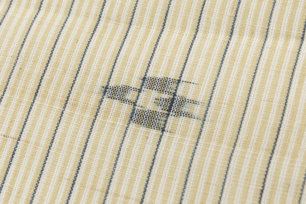 八重山上布の特徴は、苧麻(ちょま/からむし)手紡ぎ糸のさらっとした風合いと風通しが良いこと、白地に浮かび上がる大らかな絣模様です。一反の着尺を織るための糸を作るには、経糸(たていと)が約50日、緯糸(よこいと)が約40日かかります。非常に根気のいる作業であるため、近年ではラミー糸(手紡ぎではない苧麻の糸)を経糸に使用したものも増えています。
