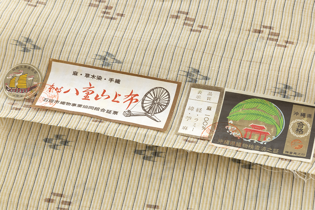 八重山上布は、沖縄県八重山郡周辺で作られている織物です。苧麻(ちょま/からむし)の手紡ぎ糸を使って織られ、古くは琉球王朝時代に貢布としても利用されてきました。