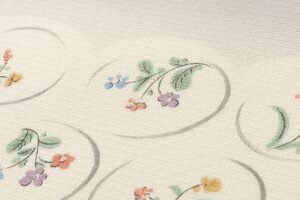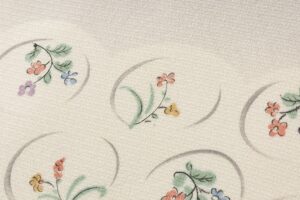 「図案には花鳥風月や有職文様などの文様調のものが用いられる」「基調の色が決まっておらず多くの色を使用した鮮やかな色合いである」「金銀箔が施されている」ことが特徴です。糊を使って筆で色付けする際に滲んで色移りすることを防ぐ 「糸目糊」という技術が用いられています。