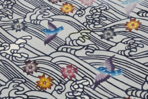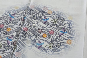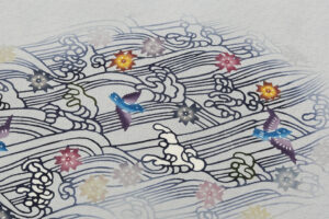 風物では桜や梅、柳、菖蒲、雪持笹、雀、蝶など、友禅や江戸小紋と同じような文様も多く、他には鶴や亀、松竹梅、鳳凰などの吉祥文もよく使われています。