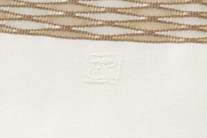 帯などの西陣織の製品には、証紙番号と呼ばれる組合員番号が付されています。これは西陣織工業組合の組合員一社一社に付されている固定番号です。