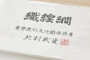 北村武資氏は1995年「羅」の技法において、さらに2000年には「経錦」の技法において、2つの分野で重要無形文化財保持者、すなわち人間国宝に認定されておられ、染織界における最も重要な位置を占める染織家のひとりです。