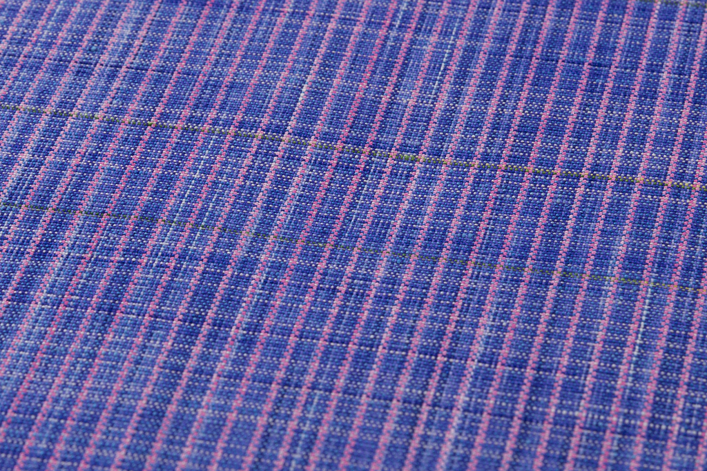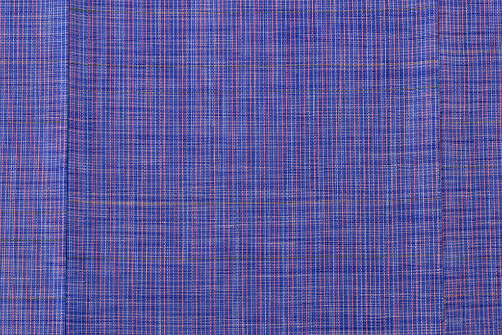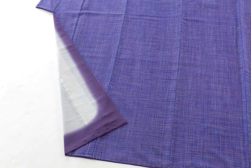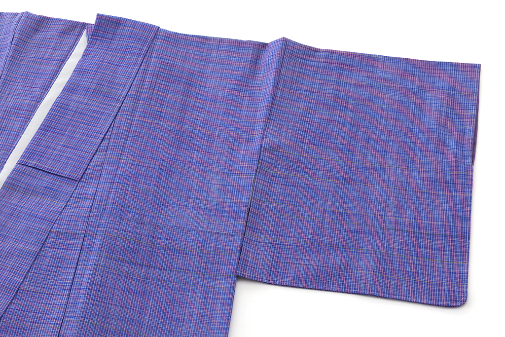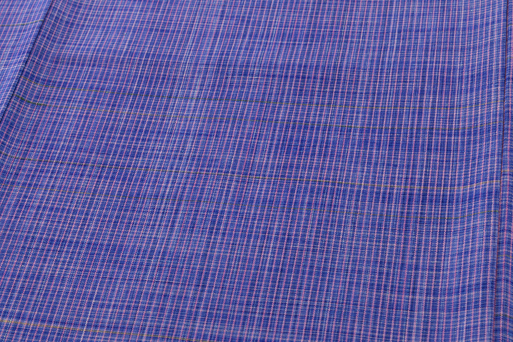 蓮の茎から一本ずつ引き出した手積み蓮糸を緯糸に用いて織り上げた、蓮の繊維が他の自然布には無いしっとりと心地よい質感を生み出し、草木染めによる美しい天壇青の色彩が鮮やかに浮かび上がる蓮香布織 紬着物です。