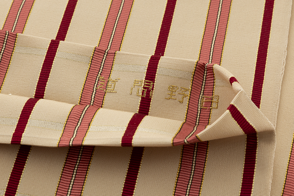 帯などの西陣織の製品には、証紙番号と呼ばれる組合員番号が付されています。これは西陣織工業組合の組合員一社一社に付されている固定番号です。
