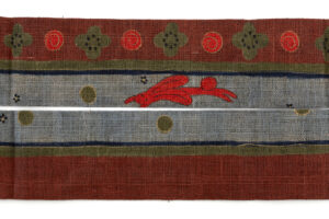 「シナノキ」や「オオボダイジュ」の樹皮からつくられる「科布(しなふ)」は、葛布・芭蕉布と並ぶ日本三大古代布のひとつ。今では新潟県や山形県の一部地域のみで生産されています。樹皮から採れる靭皮(じんぴ)繊維をはいで、灰汁で煮て薄く裂き、出来上がった糸で丹念に織り上げます。通気性がよく、軽く、水濡れにも強く、使いつづけるほどに味わいが増す織物です。素朴で野趣味のあるざっくりとした生地感を活かして八寸名古屋帯や角帯、草履やバッグなどが作られ、盛夏の装いに最適です。2005年に「羽越しな布」が伝統工芸品に指定。