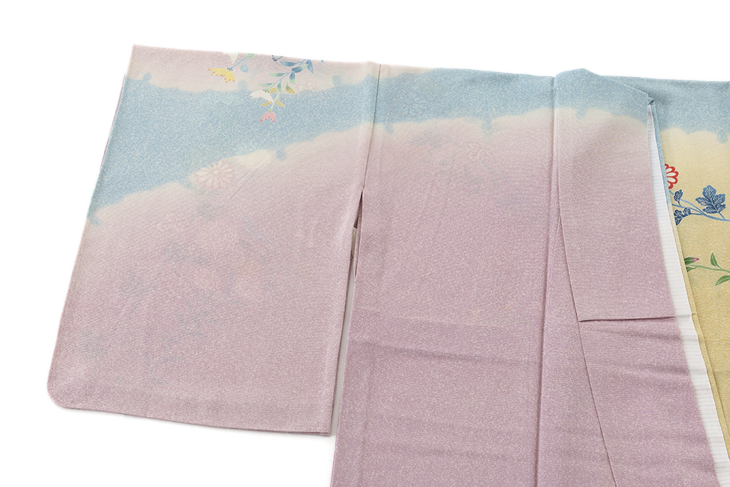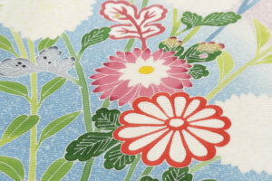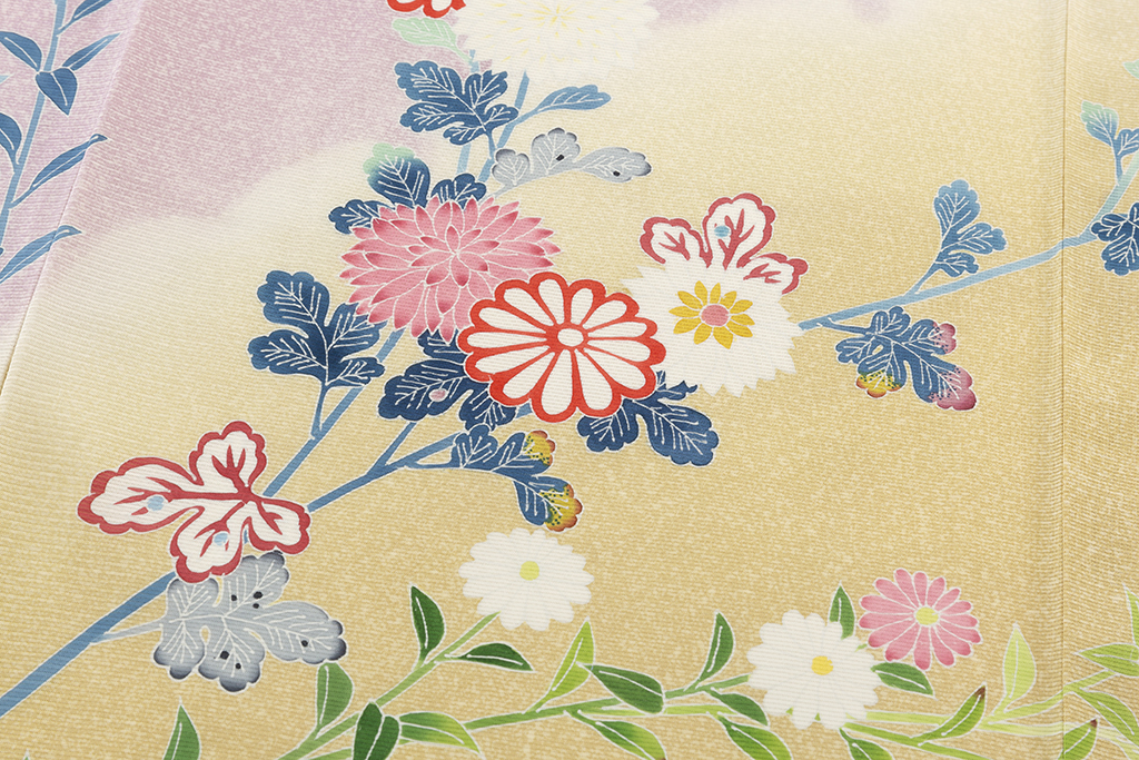 京友禅の特徴はやわらかい色合いと華やかさで、装飾には刺繍や金銀箔が多く使用されており、一方加賀友禅は自然の風景を写実的に描くのが特徴で、華やかさを演出する京友禅とは対極的なデザインです。
