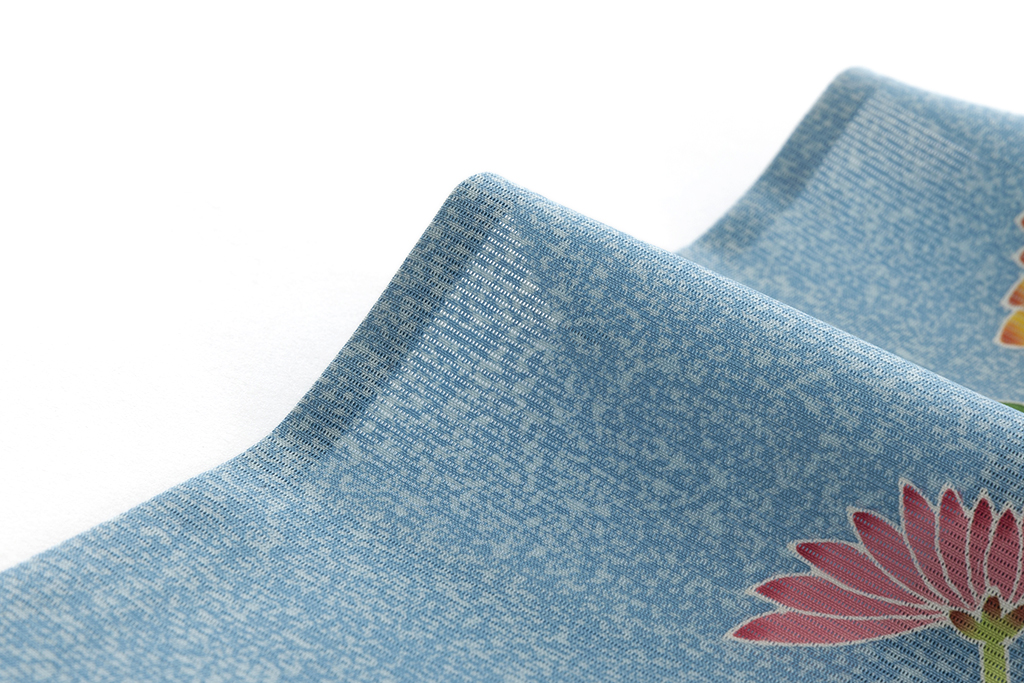 羽田登喜男氏は、このような京友禅の華麗さと加賀友禅の配色を融合させ、「羽田友禅」を完成させました。