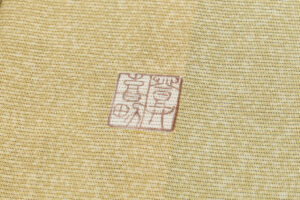 特に「鴛鴦(おしどり)」の文様は、羽田登喜男氏を代表する人気の作品で、「鴛鴦」を生み出すために、文様の部分を白く残して染め上げる白揚げや、細かい粉状にした金砂を接着剤で布地にまきつける金砂子のような加賀友禅の技法を用いました。