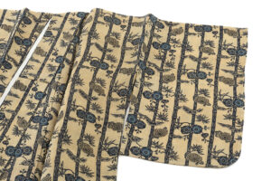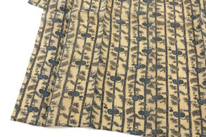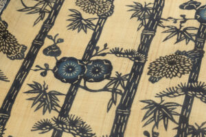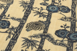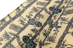 風物では桜や梅、柳、菖蒲、雪持笹、雀、蝶など、友禅や江戸小紋と同じような文様も多く、他には鶴や亀、松竹梅、鳳凰などの吉祥文もよく使われています。