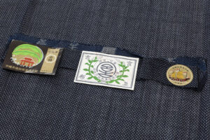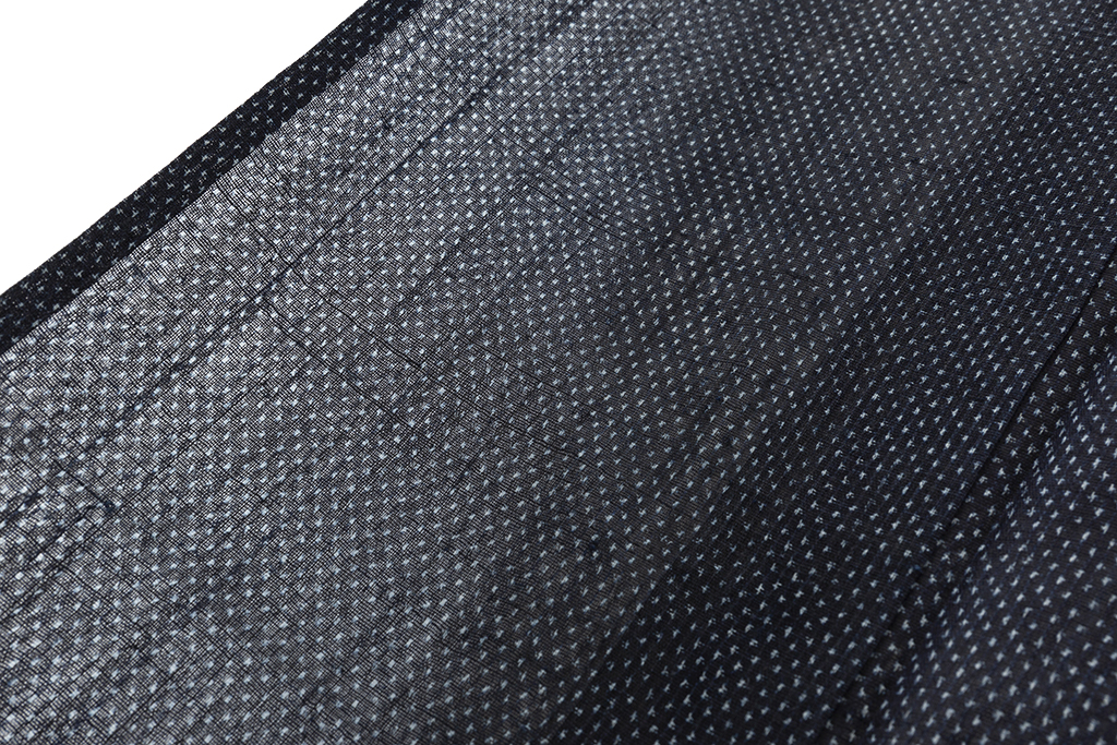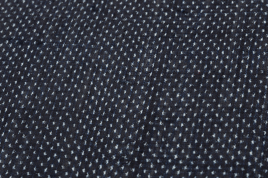 宮古上布は、「括染め」によって生まれる、幾重にも重なった琉球藍の濃い紺色の中に白で浮かび上がる「十」の形や花柄などの美しく繊細な絣模様、そして「砧打ち」によって生まれるロウを塗ったような光沢、ツヤ感が最大の特徴です。