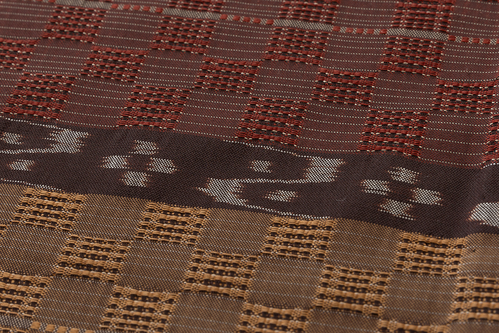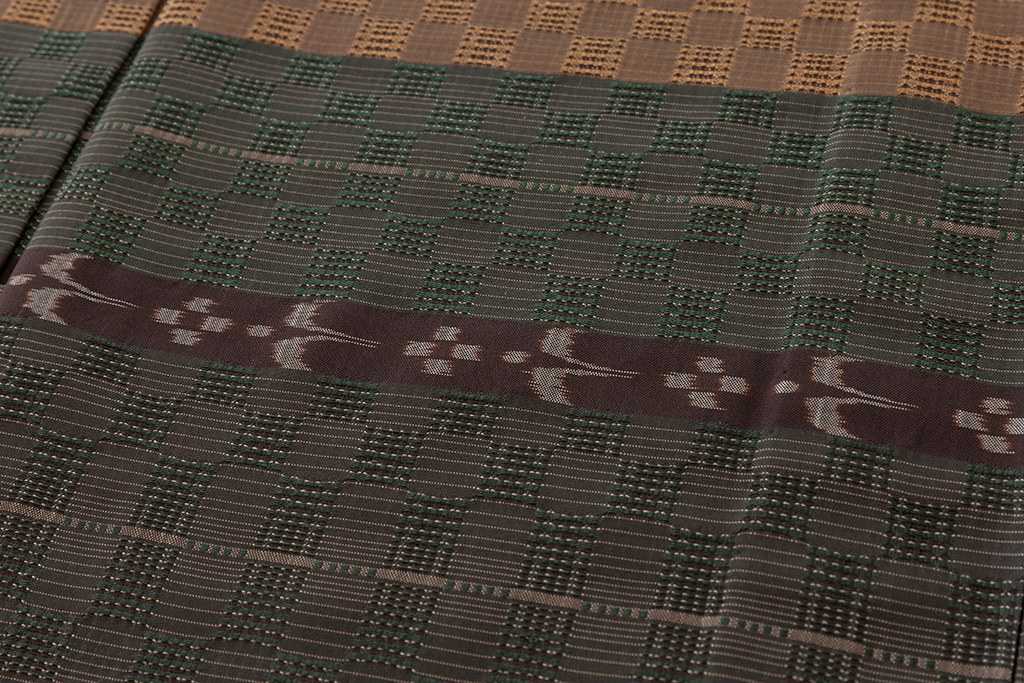 花織と絽織を市松、菱形模様または、前後、左右交互に織る。