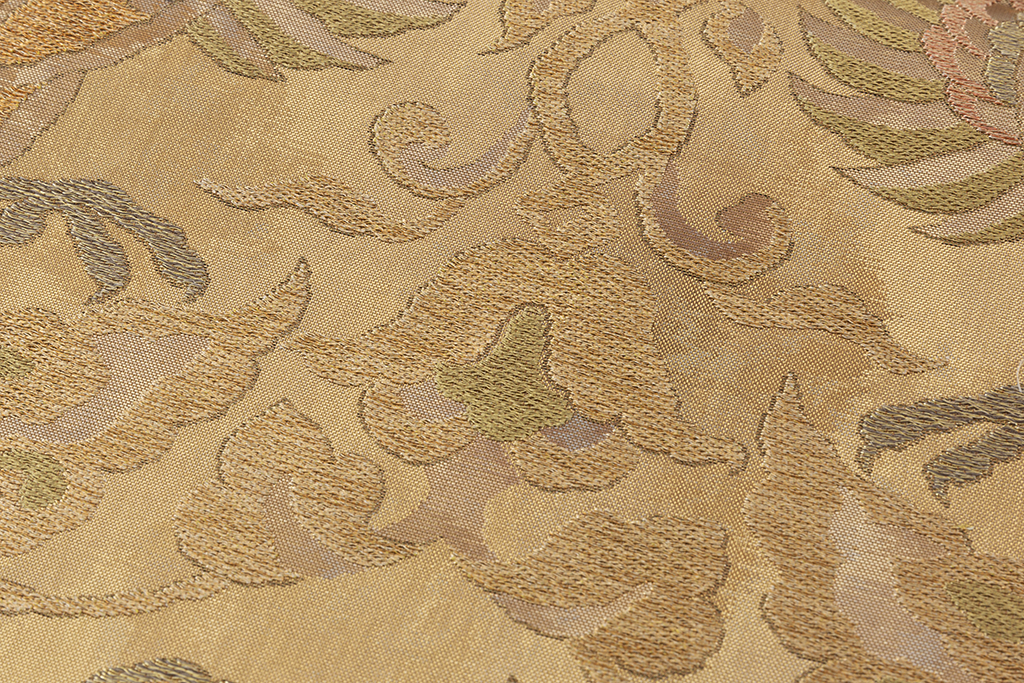 西陣の織屋は、平安朝以降連綿と積み重ねられてきた高い技術の錬磨に加えて、優れたデザイン創作のため、創造力や表現力への努力を重ね、「大舎人の綾」「大宮の絹」などと呼ばれる織物が作られ、また独自の重厚な織物は寺社の装飾に使用されてきました。