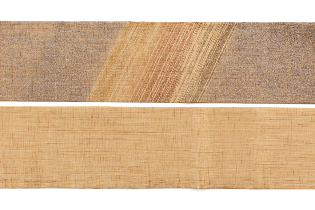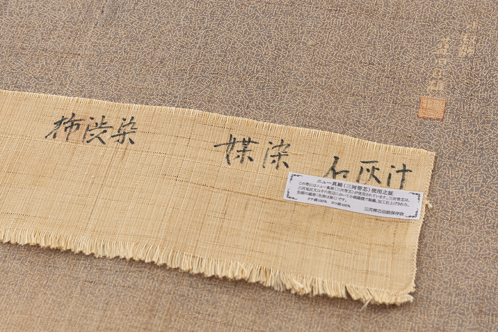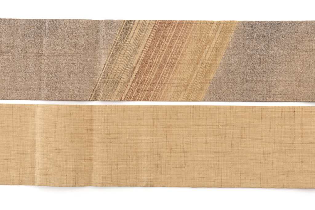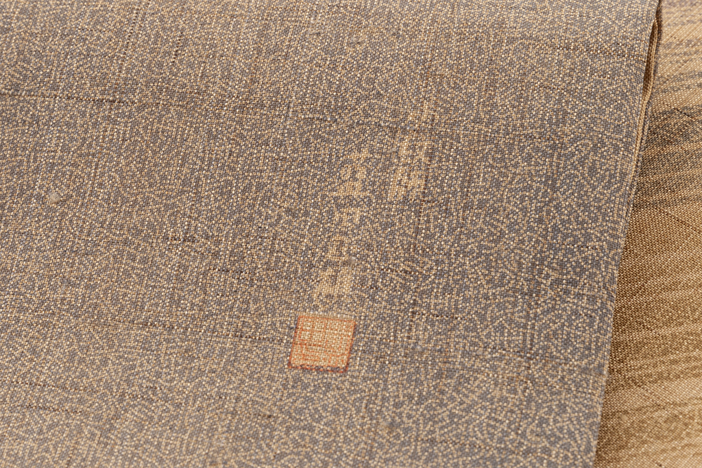 日本工芸会正会員 藍田正雄作 柿渋染 紬地九寸名古屋帯