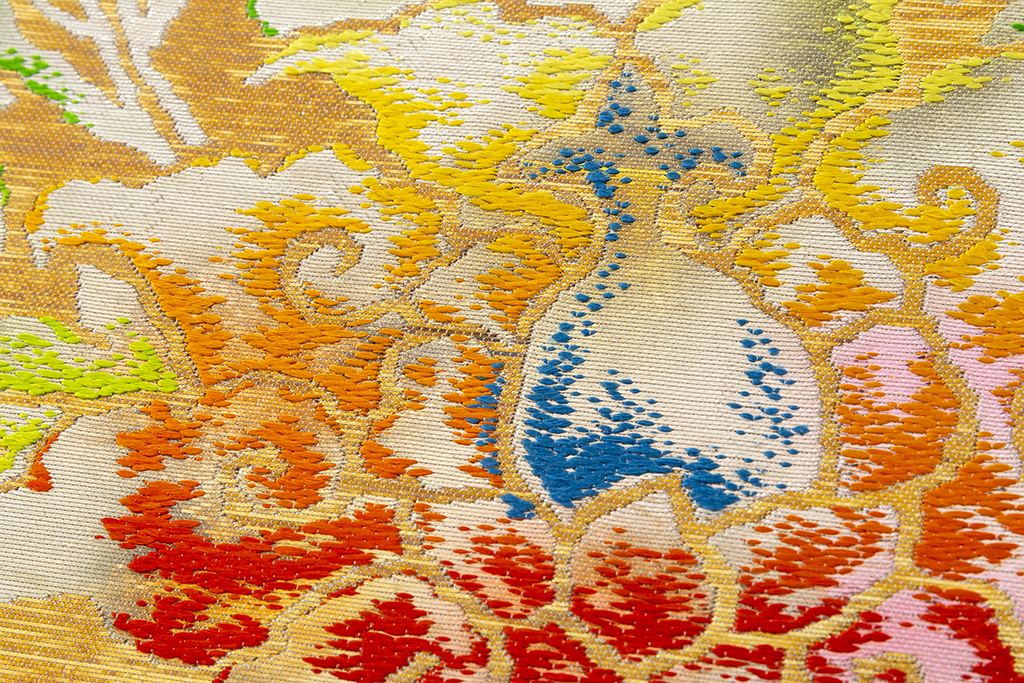 西陣織とは、「多品種少量生産が特徴の京都(西陣)で生産される先染(さきぞめ)の紋織物」の総称です。