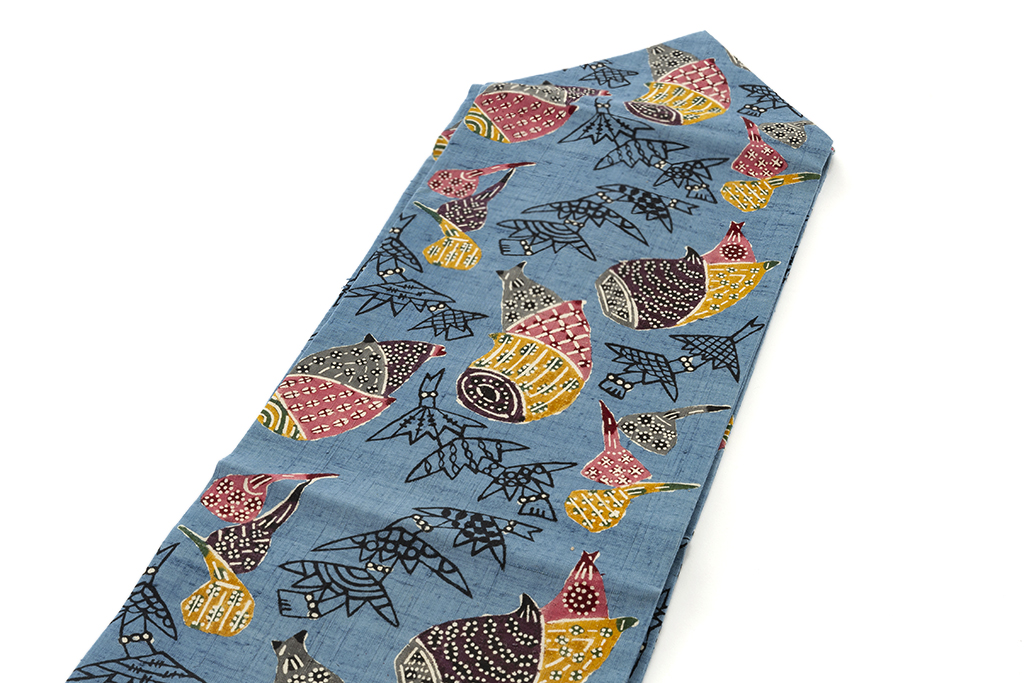 鈴木紀絵作 型絵染 開き九寸名古屋帯
