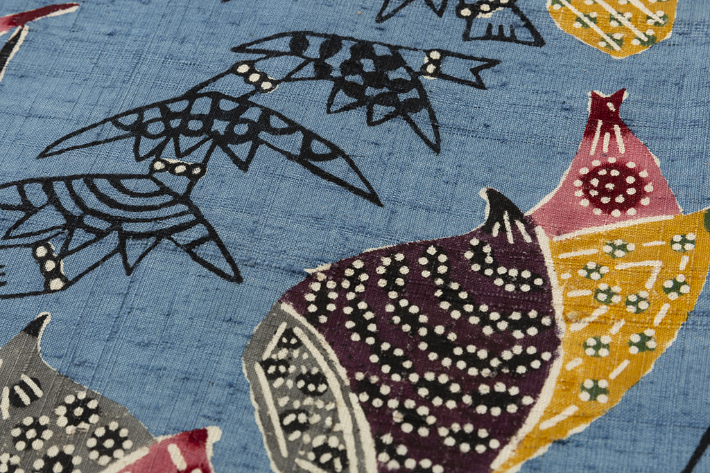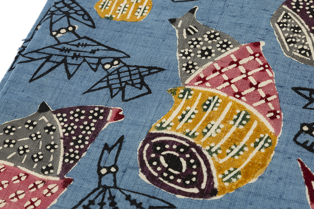 型絵染めとは伝統的な型染と異なるもので、1956年(昭和31年)に民藝運動でも有名な人間国宝 芹沢銈介氏の技法が重要無形文化財に指定された際に初めて使用されたものです。