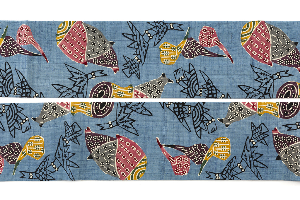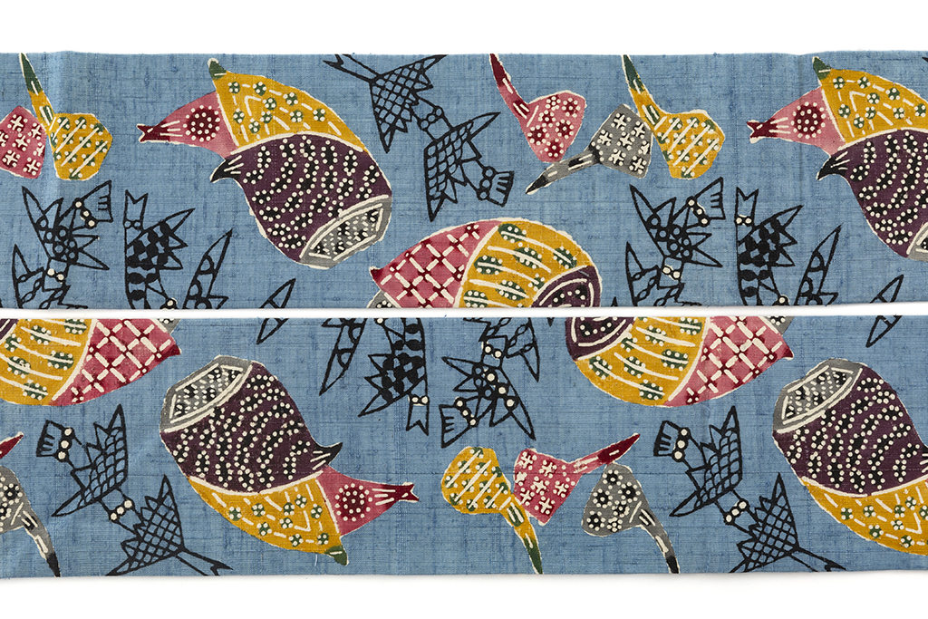 人間国宝 芹沢銈介作 型絵染 縮緬九寸名古屋帯