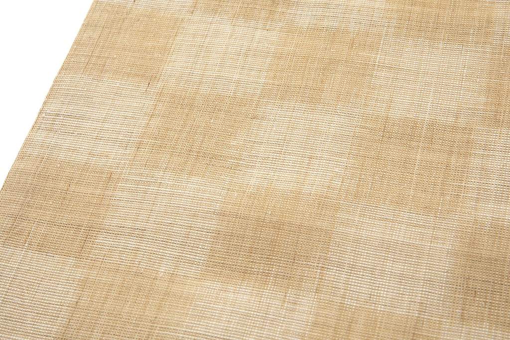 さらに、宮古上布は、繊細な柄に加えて、苧麻の細く薄い糸のおかげで、程よく軽い透け感があり、濃い色合いでも涼やかに見せてくれます。