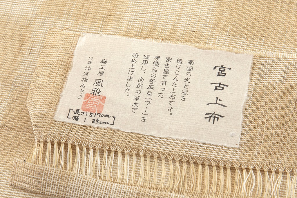沖縄県宮古島で作られ、日本三大上布の1つであり、日本古来の高級織物の一つとして600年の歴史を持つ宮古上布。