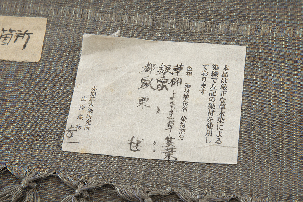 草木で染めた糸が最も美しくなる年、その時を待ってから織り上げるため、山岸幸一氏の作品はすべての工程を終えて反物となるまでに4年から5年もの歳月がかかります。