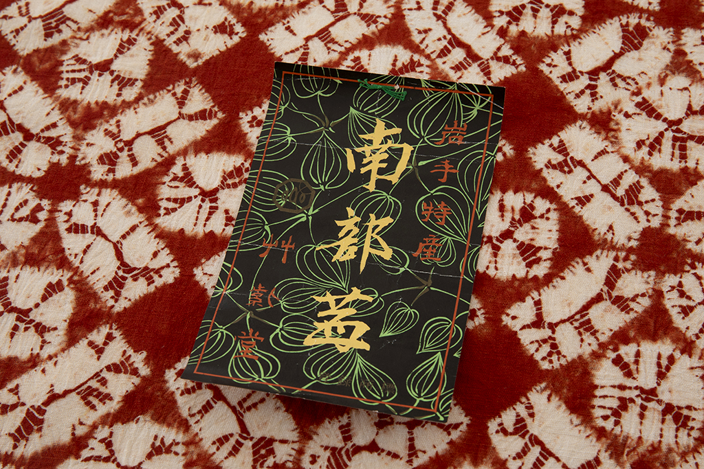 紫根染はムラサキ、茜染はアカネという植物の根からとった染料で染めあげたもので、日本に古くから伝わる草木染です。南部地方に伝わったのは鎌倉時代以前と いわれ、南部藩政時代には、藩の手厚い保護の下に生産されていましたが、明治の時代になりその保護が解かれてからは、盛岡地方には、伝統技法を伝える人が完 全に途絶えてしまいました。しかし、大正5年に、紫根染を復興させるため県の主唱により紫根染の研究が始まり、秋田県の花輪地方にかろうじて残っていた技術 者を招いてその技術を学び、更に独自の技法を開発、その後大正7年「南部紫根染研究所」が設けられ、草紫堂初代藤田謙が主任技師として赴任いたしました。 昭和8年、南部紫根染所究所の主任技師であった先代藤田謙が独立し、現在の地に「草紫堂」を創業、いままでの素朴な図柄(大桝、小桝、立桶)に加え、数多く の新しいデザインを生み出し、現在の絞り染の基礎を築き上げました。手作業で染める。独特の絞り模様で、風合いがあります。