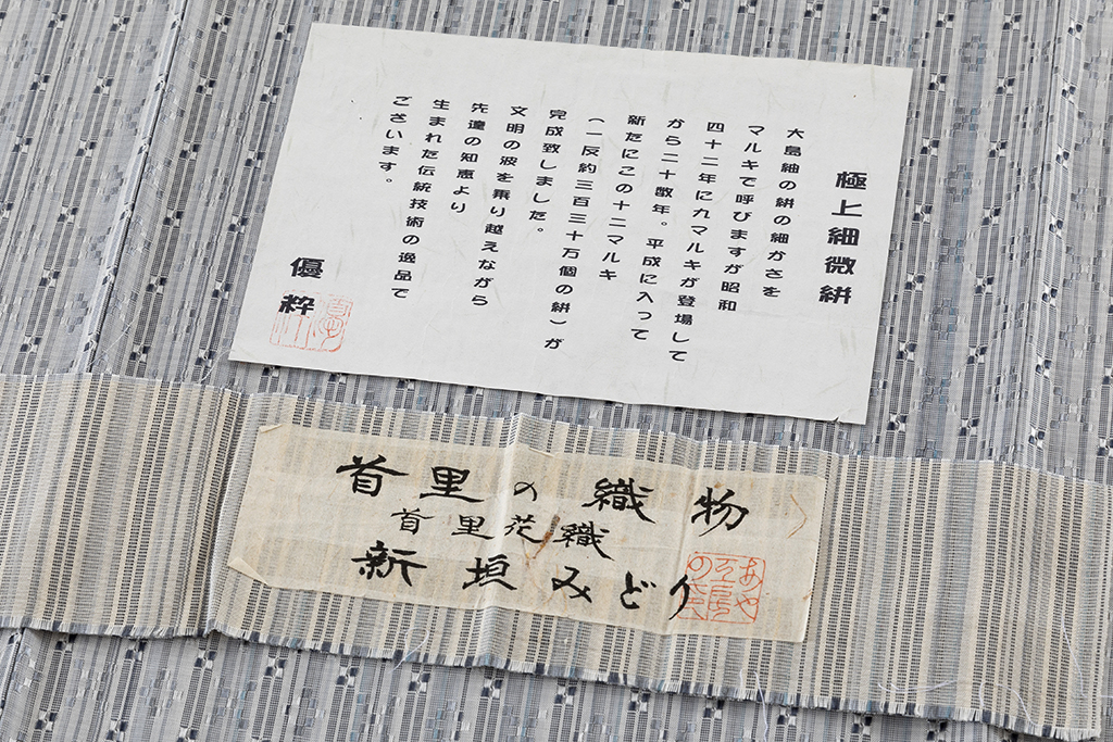 沖縄の織物のうち最も格式の高い織物で、王家の妃、王女が着た夏衣。