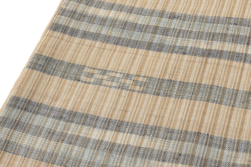 さらに、宮古上布は、繊細な柄に加えて、苧麻の細く薄い糸のおかげで、程よく軽い透け感があり、濃い色合いでも涼やかに見せてくれます。