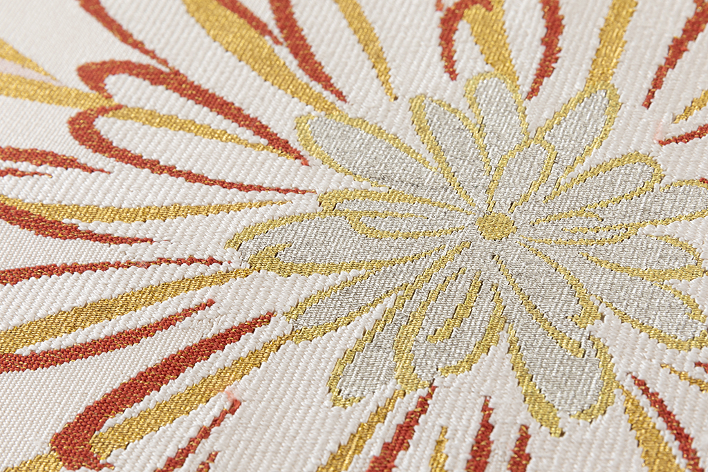 西陣織とは、「多品種少量生産が特徴の京都(西陣)で生産される先染(さきぞめ)の紋織物」の総称です。
