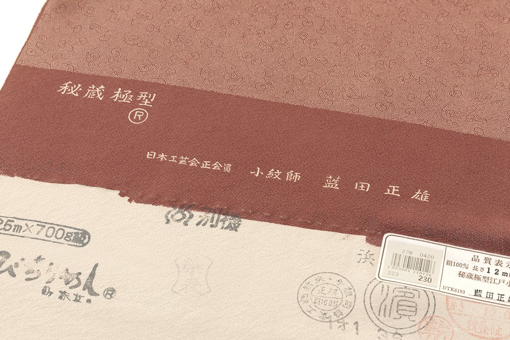 日本工芸会正会員 藍田正雄作 江戸小紋 着尺 未仕立て品