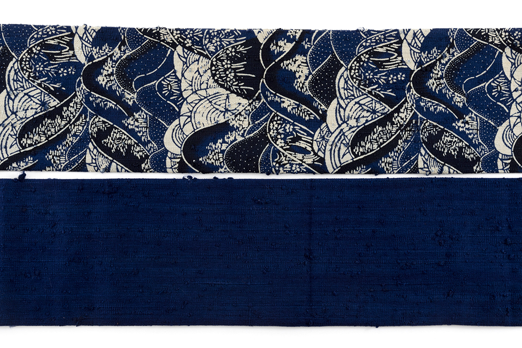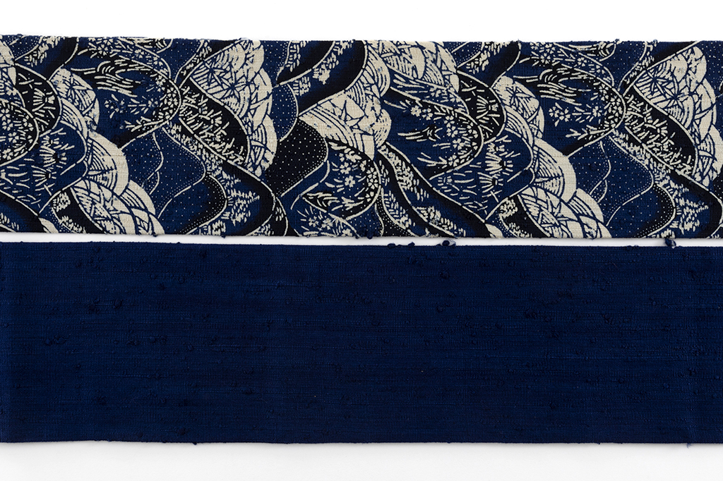 浦野理一作 型絵染 縦節紬 九寸名古屋帯