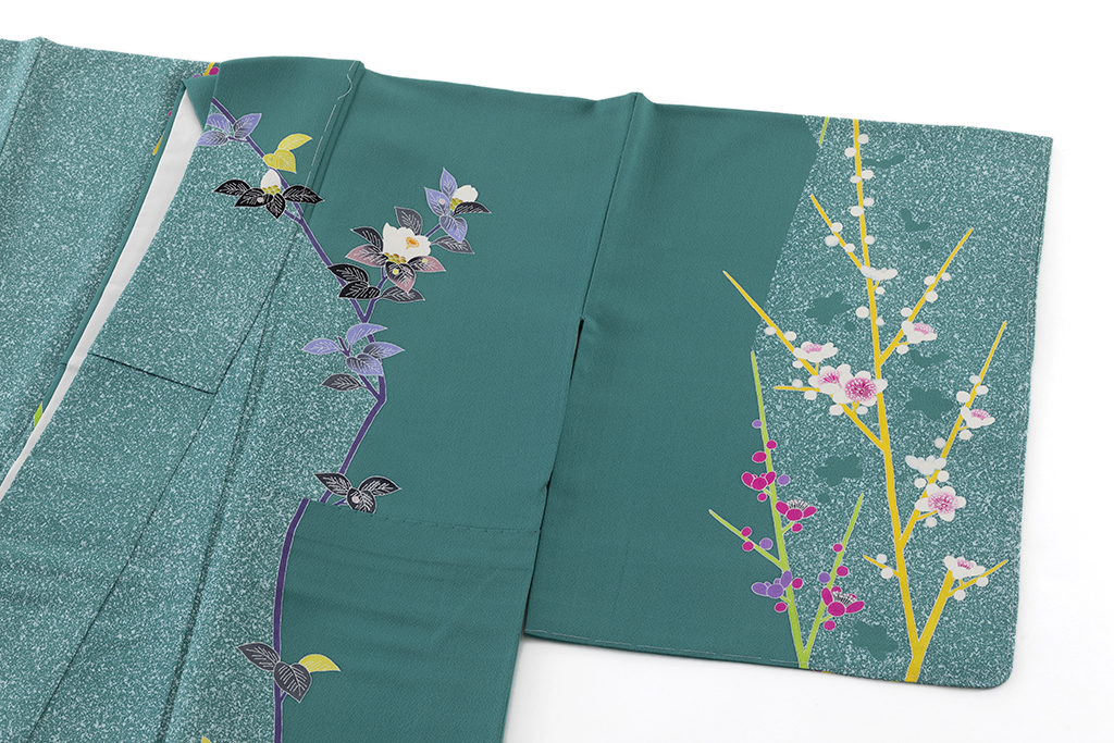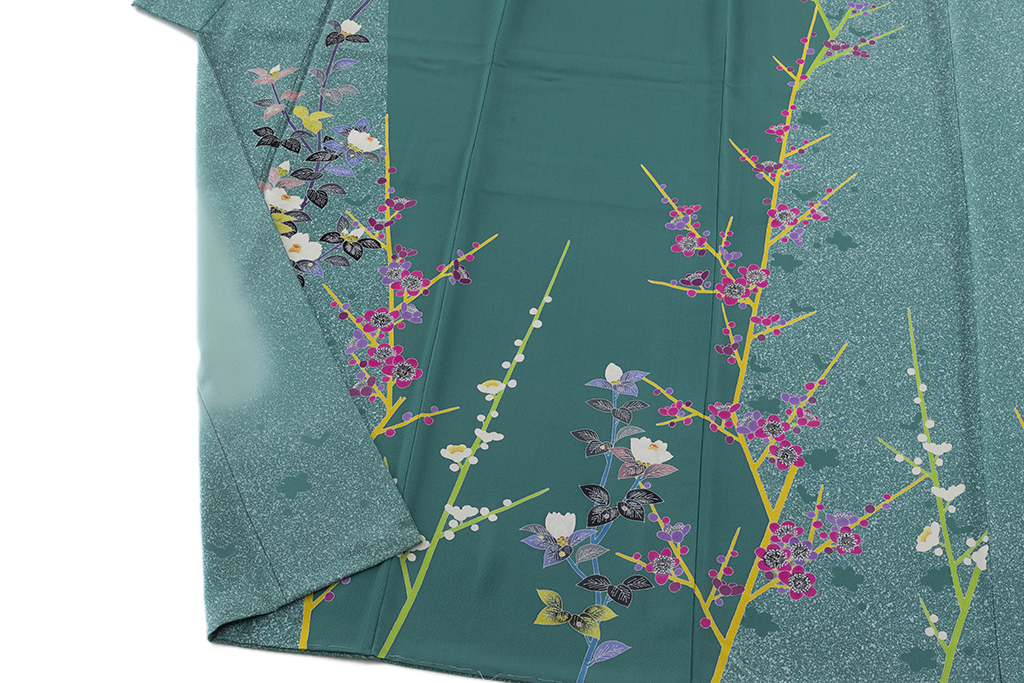 京友禅の特徴はやわらかい色合いと華やかさで、装飾には刺繍や金銀箔が多く使用されており、一方加賀友禅は自然の風景を写実的に描くのが特徴で、華やかさを演出する京友禅とは対極的なデザインです。