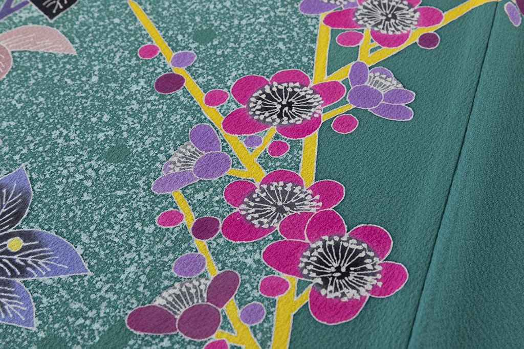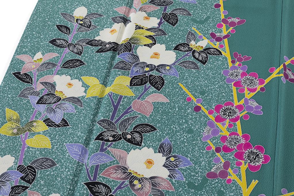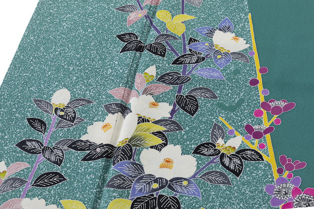 羽田登喜男氏は、このような京友禅の華麗さと加賀友禅の配色を融合させ、「羽田友禅」を完成させました。