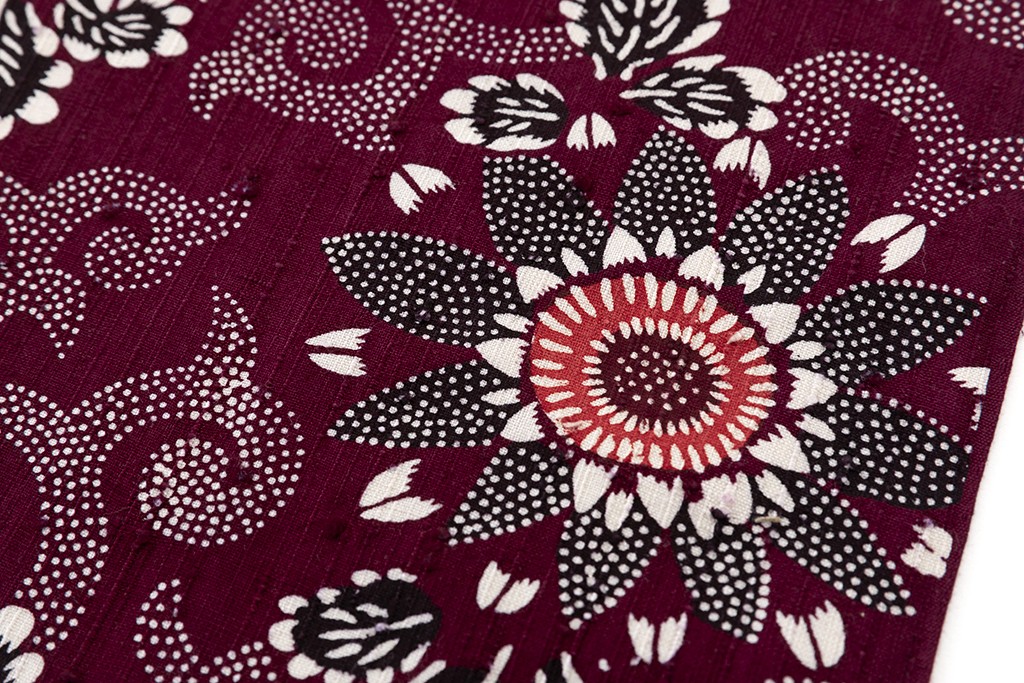 型絵染めとは伝統的な型染と異なるもので、1956年(昭和31年)に民藝運動でも有名な人間国宝 芹沢銈介氏の技法が重要無形文化財に指定された際に初めて使用されたものです。
