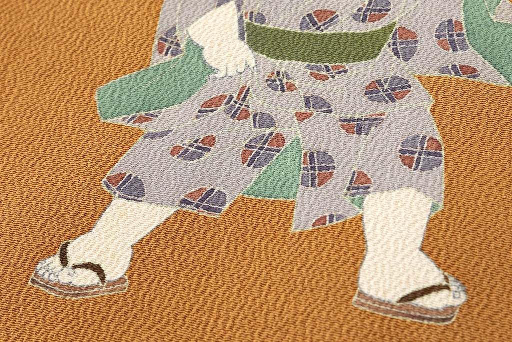 草花模様が中心の加賀友禅の中で、初代 由水十久氏は、模様として最も扱いにくい題材とされる人物画を好み、特に童を題材に独特の図案で多くの人たちを魅了しています。