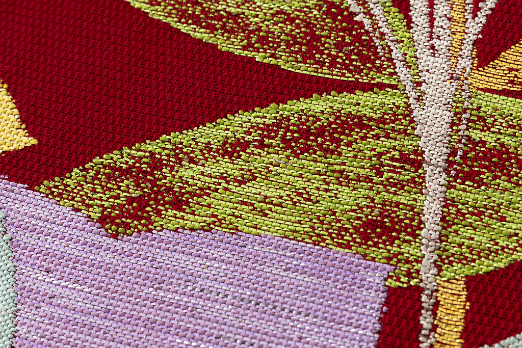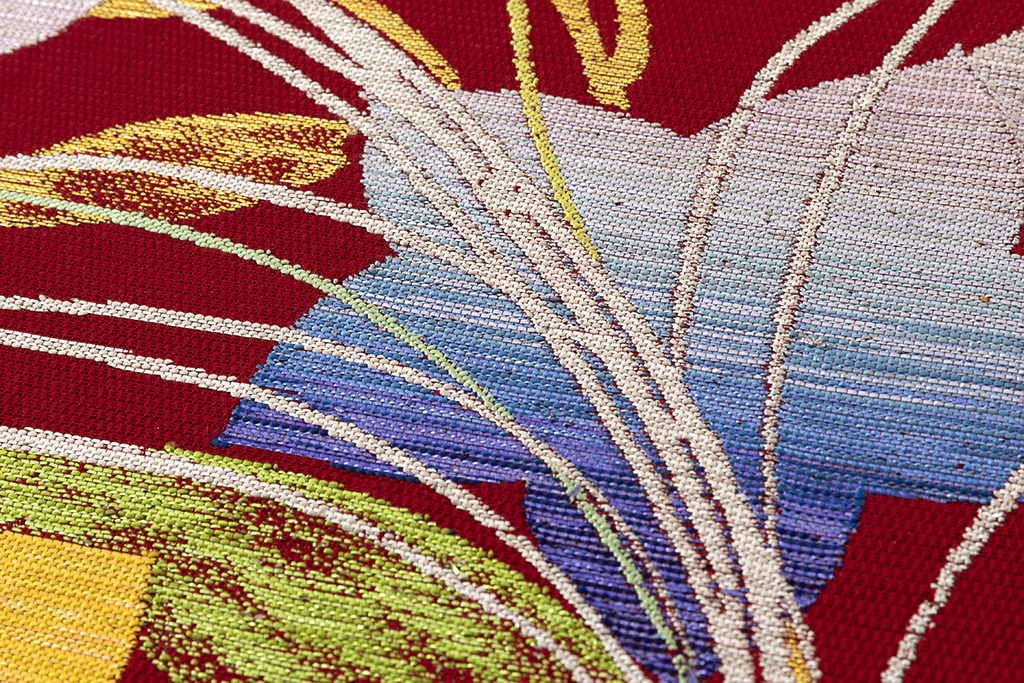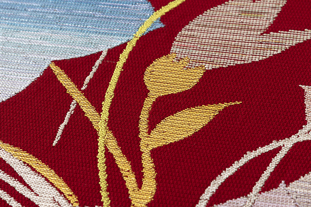 西陣織とは、「多品種少量生産が特徴の京都(西陣)で生産される先染(さきぞめ)の紋織物」の総称です。