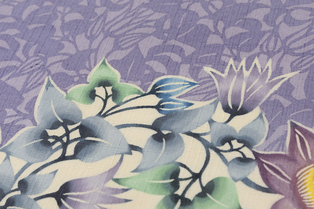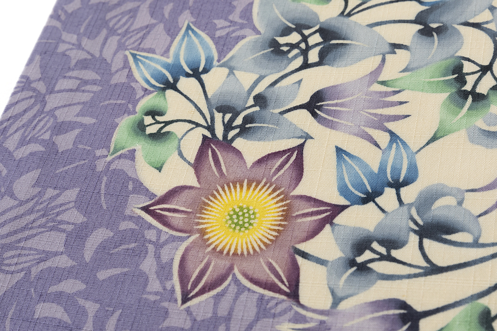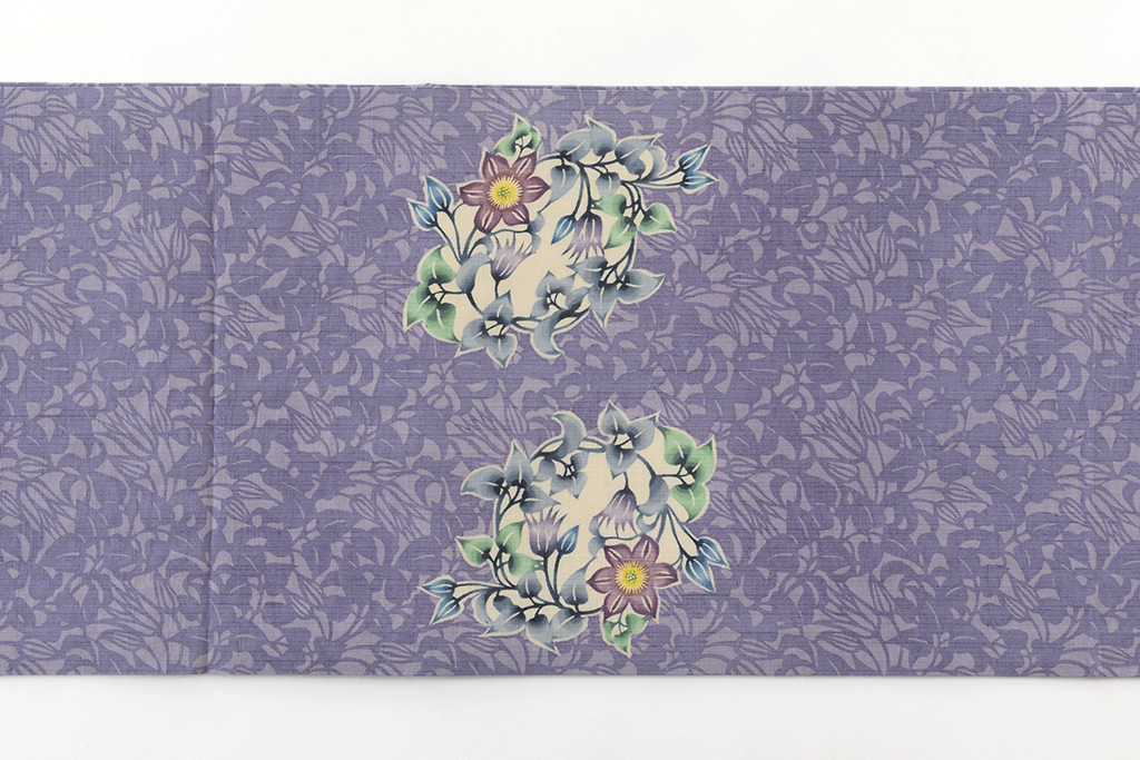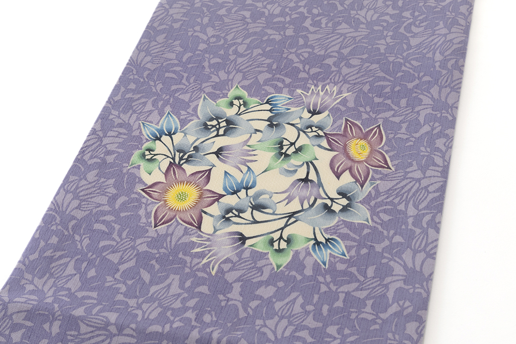 草花を丹念に図案化し、柔らかな階調の色彩で染め上げた作品は優雅で格調高いものになります。