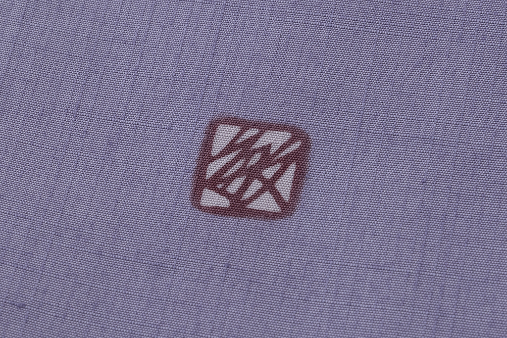 和紙を貼り合わせた渋紙に独自の世界観をあらわした模様を彫り、布地という限られた空間に防染糊を置き、染料を使って染める「型絵染」。