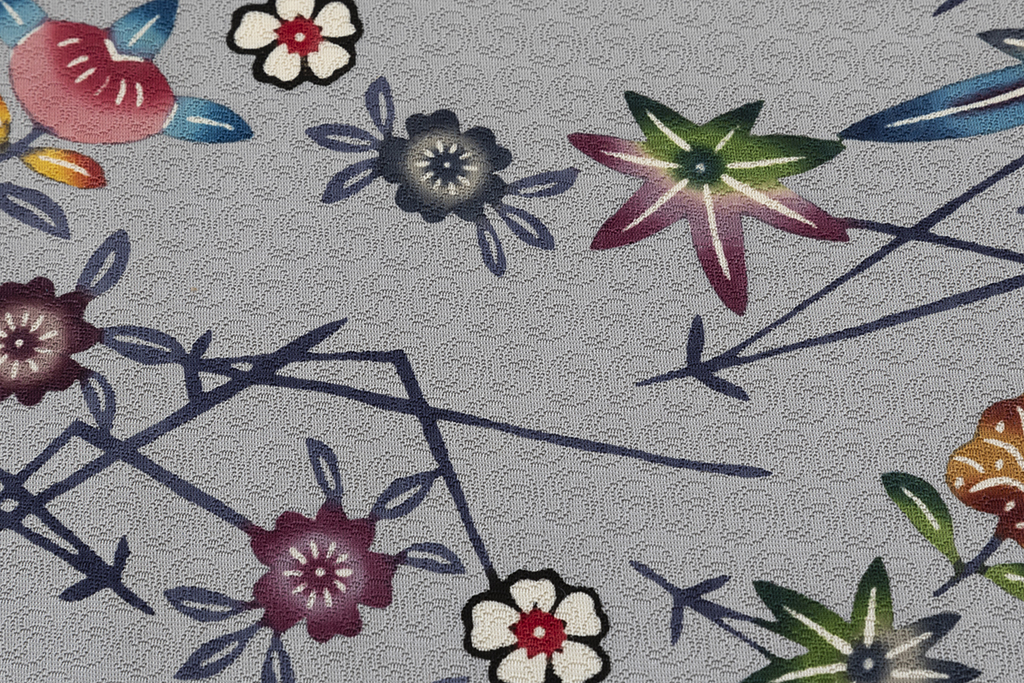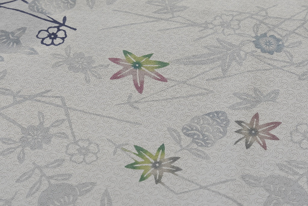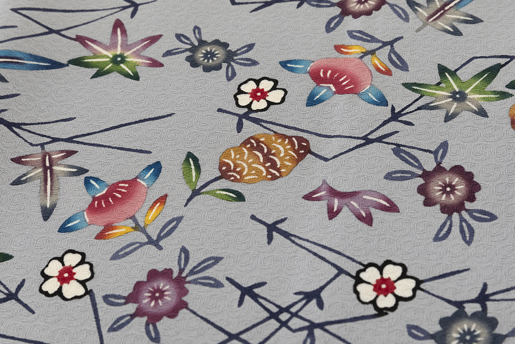 風物では桜や梅、柳、菖蒲、雪持笹、雀、蝶など、友禅や江戸小紋と同じような文様も多く、他には鶴や亀、松竹梅、鳳凰などの吉祥文もよく使われています。