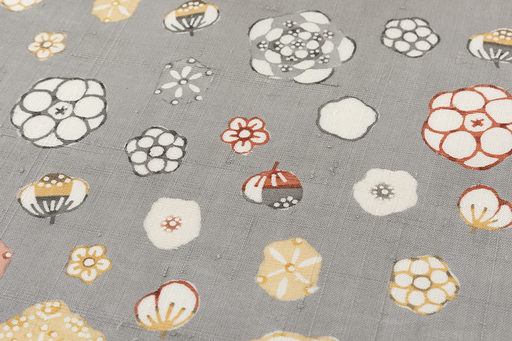 国画会会員 岡本紘子作 型絵染 紬着物地 「百花にさきがけて」 未仕立て品