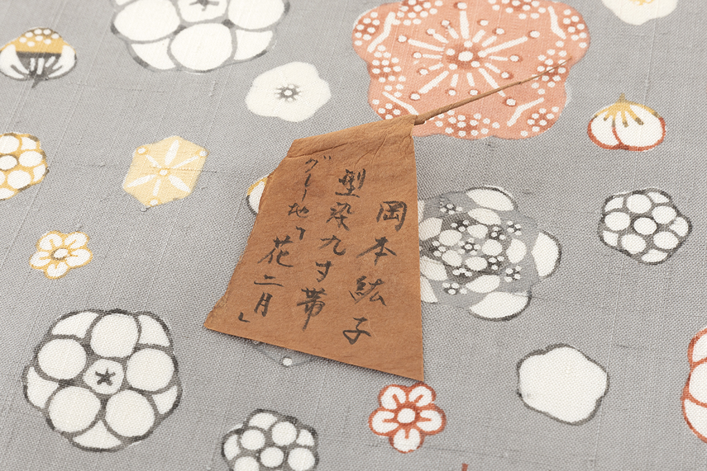 幼少より絵を描くのが好きで、女子美術大学卒業後に人間国宝・ 芹沢銈介氏に師事し、芹沢門下生として出会ったご主人の型絵染作家・岡本隆志さんとは結婚後もお二人揃って国画会を代表する型絵染め作家として活躍されています。