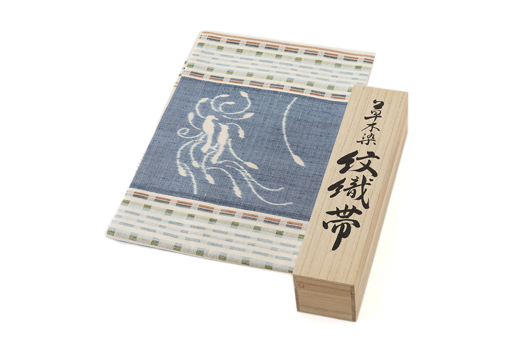 その後、強靱で艶のある絹糸による絵絣や紋織の着物を日本伝統工芸展を中心に発表し続け、その技術と芸術性が高く評価されて1975年第22回日本伝統工芸展で日本工芸会総裁賞、2001年第48回展で東京都知事賞、2002年紫綬褒章、2003年第50回展で日本伝統工芸展第50回展記念賞等、受賞を重ねられました。2005年には、「紬織」で、2人目の重要無形文化財保持者・人間国宝に認定され、、2009年旭日小綬章、2010年旭日中綬章を受章を受け、現在も制作・後進の指導・普及活動に活躍しておられます。