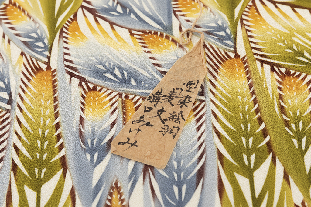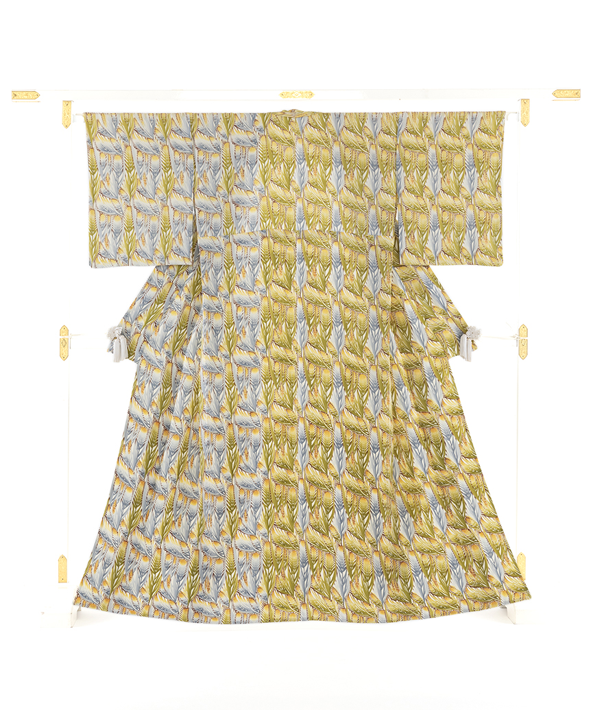 日本工芸会正会員 溝口あけみ作 型絵染 単衣 訪問着 「麦文」